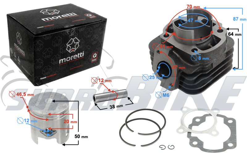 Cylinder 2T 1PE40QMB sworzeń - 12mm 70ccm kpl. /MORETTI/