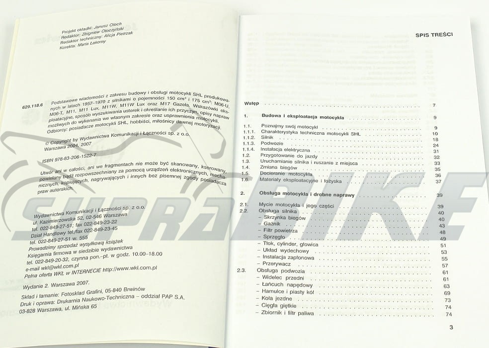 Podstawowe wiadomości z zakresu budowy i obsługi motocykli SHL produkowanych w latach 1957-1970 z silnikami o pojemności 150cc i 175cc: M06-U, M06-T, M11, M11 Lux, M11W, M11W Lux oraz M17 Gazela. Wskazówki eksploatacyjne, sposób wyszukiwania usterek i określanie ich przyczyn, opisy napraw możliwych do wykonania we własnym zakresie oraz usprawnienia motocykli.
