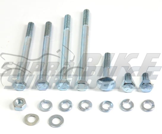 Śruby zawieszenia silnika + stojaka centralnego + podnóżek kierowcy + dźwigni hamulca tył (nożnego).