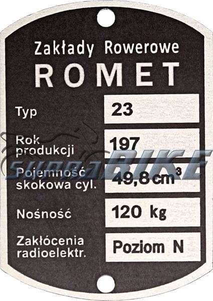 Tabliczka znamionowa ROMET - Zakłady Rowerowe, 23