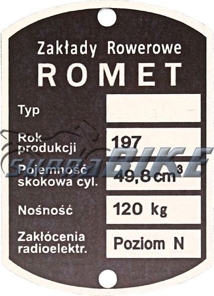 Aluminiowa tabliczka znamionowa Romet.