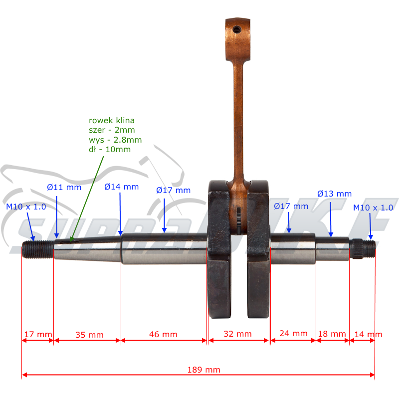 Wał korbowy do Komara z łożyskiem igiełkowym sworznia (pod sworzeń 12 mm) komplecie.